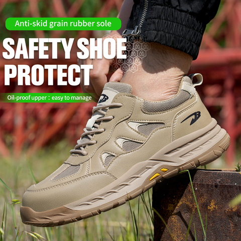 Leve Segurança Homens Sapatos Confortável Respirável Anti-Smash Anti-Puncture Mesh Wear-Resistant Non-Slip
